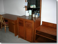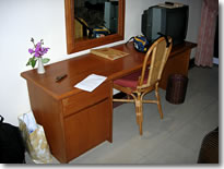 2005年の旅行ではスイートと呼ばれる部屋に泊まることが出来たのですが、スイートといっても豪華なわけではなくて、単に広いだけのようです。それでもスイートというだけあって、部屋はとにかく広大です。机は二つあって、ソファとテーブルもゆったりと置かれています。