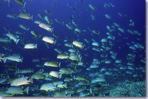 2008年GWのパラオ・ペリリューでは、ターゲットだったイレズミフエダイの群れは見れたのですが、時期としては終わりごろで後半は数も減ってしまっていました。本当のピークは3月ぐらいという話を聞き、2009年は3月にペリリューに行くことにしました。イレズミフエダイの群れがターゲットですが、前回ほとんどみられなかった産卵シーンや、群れを狙うサメも見たいところです。