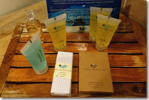 洗面所はモルディブでよくあるような半屋外になっていました。アメニティは最小限といった感じで歯ブラシはありません。コンディショナーはなくて、リンスインシャンプーのみでした。