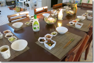 早朝ダイビング後は、一旦ホテルに戻ります。OMZダイビングサービスでは朝食のサービスはやっていないので自分たちで用意する必要があります。幸いにもアイランドテラスには共用のキッチンがあるので簡単なものなら作ることができます。
