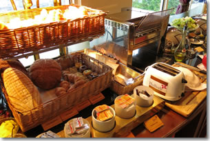 フルレホテルでは、照り焼きがあるのがお気に入りです。これだけで何杯も食べられます。和食としては漬物や味噌汁もあって充実しています。
